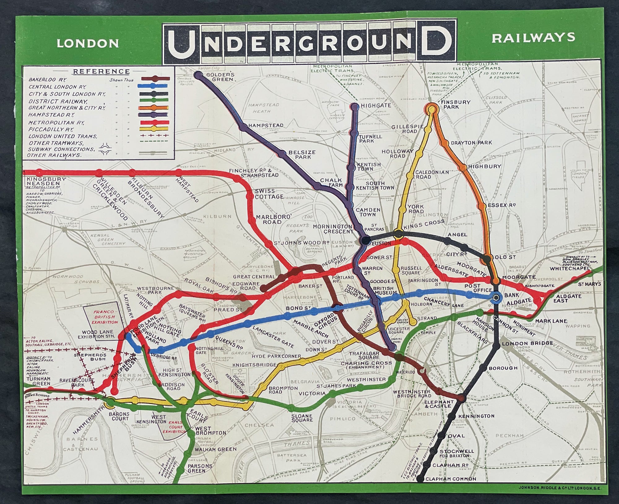 1908 UERL Johnson & Riddle Antique London Underground Map Rare 2nd