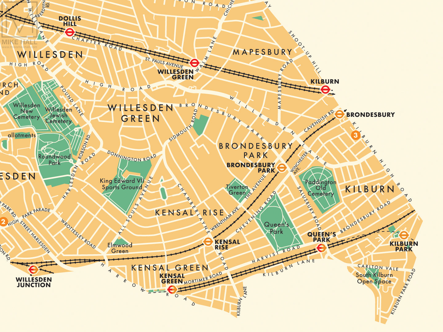 Brent (London borough) retro map giclee print โ Mike Hall Maps